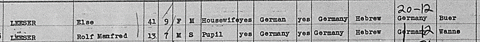 Leeser Leeser, Levy Leeser, Friederike Hirsch (geb. Leeser), Moses Leeser, Lina Leeser, Rosa Leeser, Hermann Leeser, Gustav Leeser, Leopold Leeser, Saly Leeser, Sophia Leeser, Hedwig Leeser, Robert Leeser, Regina Röttgen (geb. Leeser), Herbert Leeser, Dr. Felix Leeser