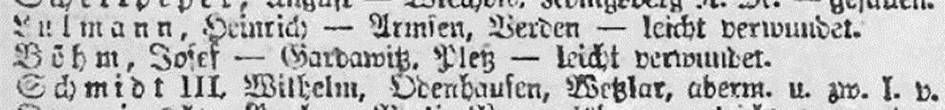 5.12.1916 Preußische Verlustlisten Nr. 702, Seite 16702: leicht verwundet