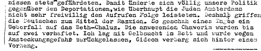 2.9.1942 Verhaftung aller Chaluzim im Beth Chaluz in der Tolstraat 128 bis auf Lore Sieskind wegen Gelbsucht und Gideon Drach, der sich verstecken konnte.