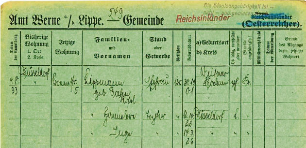 17.5.1939 mit Ehemann und beiden Töchtern in Werne/Lippe bei Minderheiten-Volkszählung