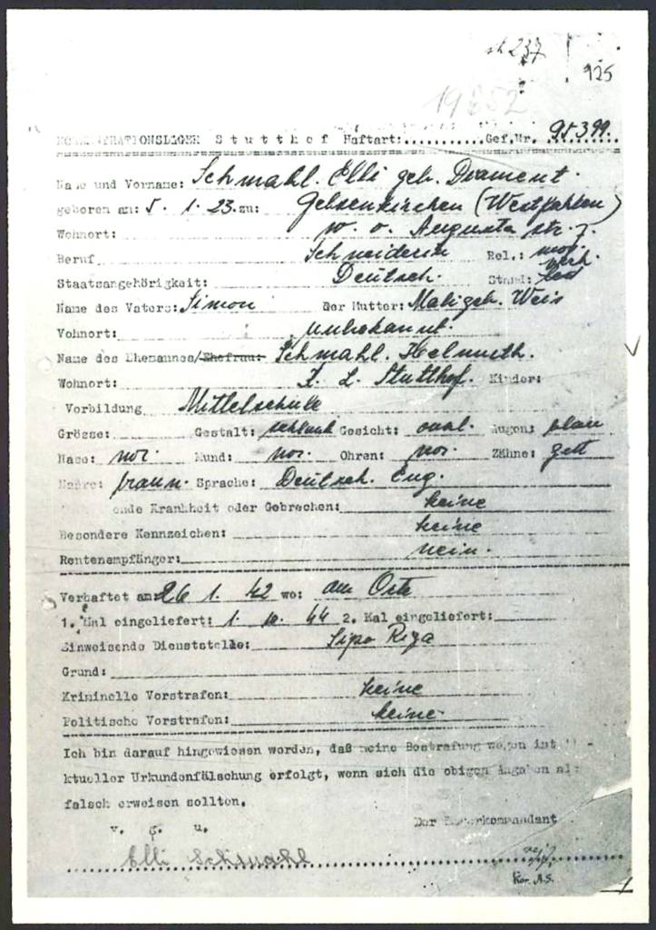 In Stutthof schwer krank im Krankenrevier mit Fleckfieber („Flecktyphus“) verursacht durch Kleiderläuse; dort freundet sie sich an mit drei Jüdinnen, die aus Auschwitz nach Stutthof kamen