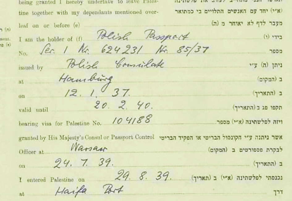 29.8.1939 Tante Selma Sandberg Eintreffen von Tante Selma Sandberg in Haifa