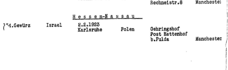 10.8.1939 Israel Gewürz abgemeldet aus dem Gehringshof, Hattenhof nach England