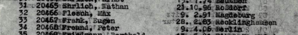 10.11.1938 Inhaftierung von 188 Erfurter Männern als „Aktionsjuden“ im KL Buchenwald, Häftlingsnummern 20435-20808, Eugen Frank bekommt die Nr. 20467