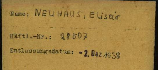 16.11.1938 Internierung des Vaters Elieser als „Aktionsjude“ im KL Dachau; Häftlingsnummer 28507