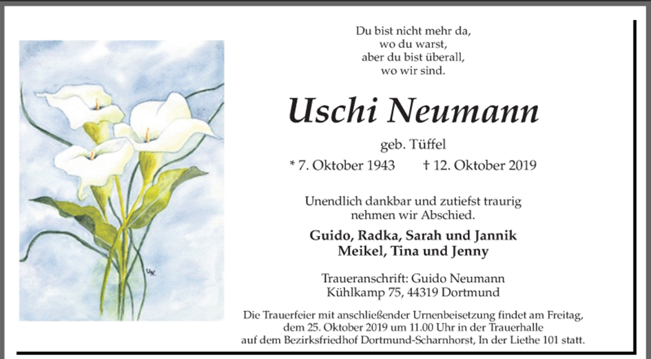 Traueranzeige 19.10.2019 in den Ruhr-Nachrichten