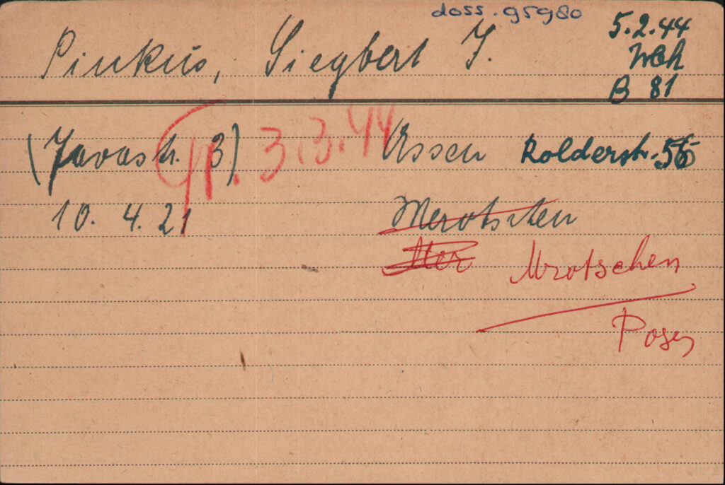 Siegfried Schmuel Pinkus *7.9.1894 in Xions, Schrimm; ✡ vor 1945 in Auschwitz