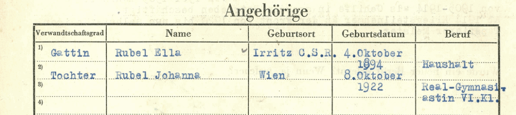 11.5.1938 Vater Leiser stellt Antrag auf Unterstützung zur Emigration der Familie bei der israelitischen Gemeinde Wien