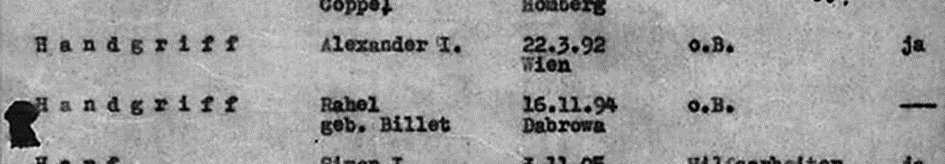 Vater Alexander Handgriff *22.3.1892 in Wien; ✡ nach 11.12.1941 in Riga