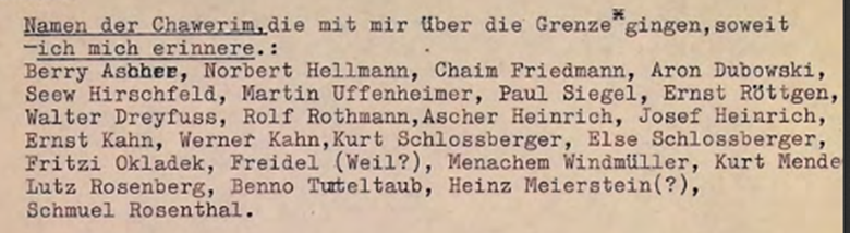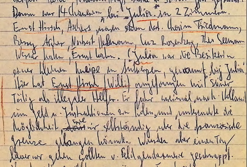 7.6.1943 von Bergen op Zoom nachts über die Grenze nach Belgien, weiter nach Antwerpen zusammen mit Chaim Friedmann, Berry Asscher, Norbert Hellmann, Lutz Rosenberg, Theo Seemann, Werner Kahn und Ernst Kahn; 14 Chaluzim werden in zwei Zimmer der Kneipenwirtin Julia einquartiert. Ernst „Willi“ Hirsch und die Asschers waren bereits dort.