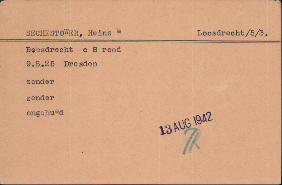 Karteikarte mit dem für die onderduiker aus Loosdrecht typischen Datumsstempel „13 AUG 1942“