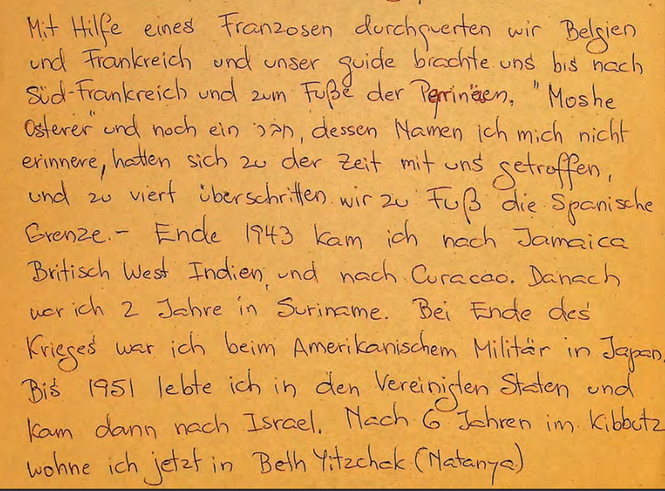 Geführt von Rik, einem belgischen Bergführer, machen sich die vier Chawerim Willi Gerler, Heinz Sechestower, Mosche Osterer und Fritz Bachrach auf den Weg über Paris, Bordeaux, Bayonne nach „Lille Ste Egue“ (St. Jean de Luz?). Sie reisen mit Hilfe des Westerweel-Netzwerks mit gefälschten Papieren – Willi Gerler als Jan Jansen, Heinz Sechestower als Peter Storm und Moshe Osterer als Hendrik van Putten