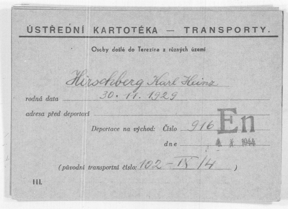 Karlheinz Hirschberg *30.11.1929 in Breslau; ✡ 9. 10.1944 Auschwitz