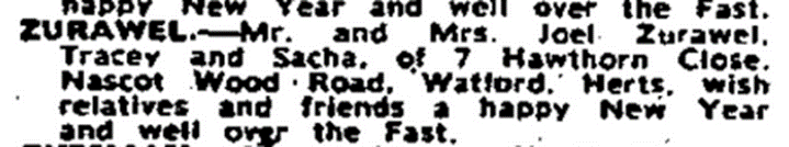 Joel Gilbert Zurawel *25.6.1939 in Paris; oo 1969 Philippa Silverstone