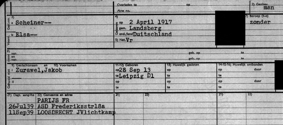 30.6.1939 Jakob Zurawel nach Amsterdam, Fredericksstraße 18 a