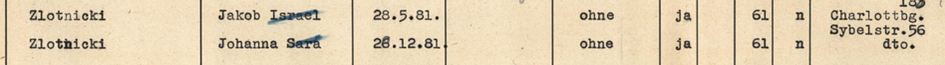 17.5.1939 Jakob mit Ehefrau und Tochter in Berlin, Sybelstraße 56 bei der Minderheitenzählung
