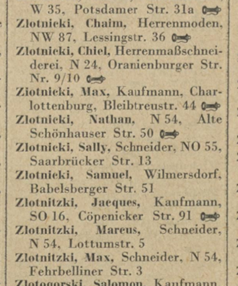 1929 Jacques Zlotnitzki im Jüdischen Adressbuch von Gross-Berlin