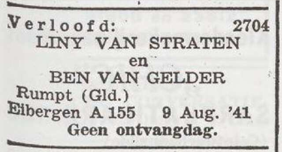 Verlobung mit Lina Liny van Straten *10.3.1916 in Deil; ✡ 19.11.1944 in Bergen Belsen