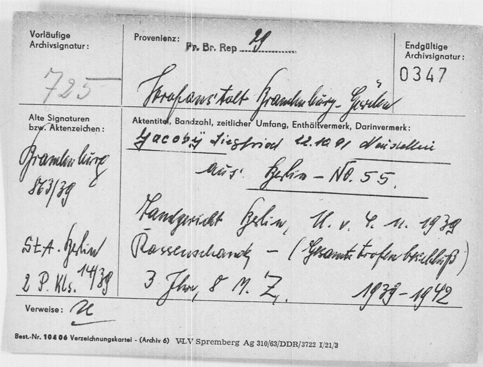 23.10.1939 verlegt von StA Plötzensee in die StA Tegel