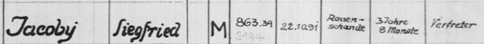 7.9.1939 Vater Siegfried zu 2 ½ Jahren Haft verurteilt wegen „Rassenschande“