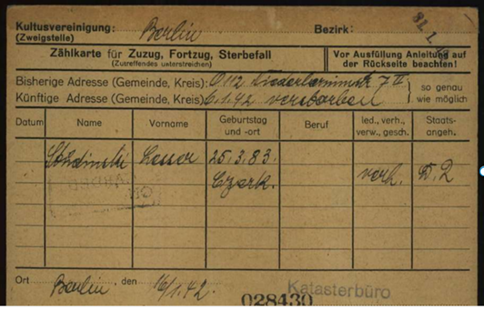 6.1.1942 Tod des Stiefvaters Lesser Studinski in Berlin