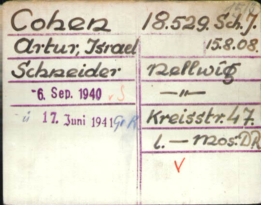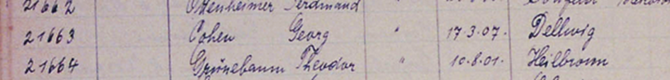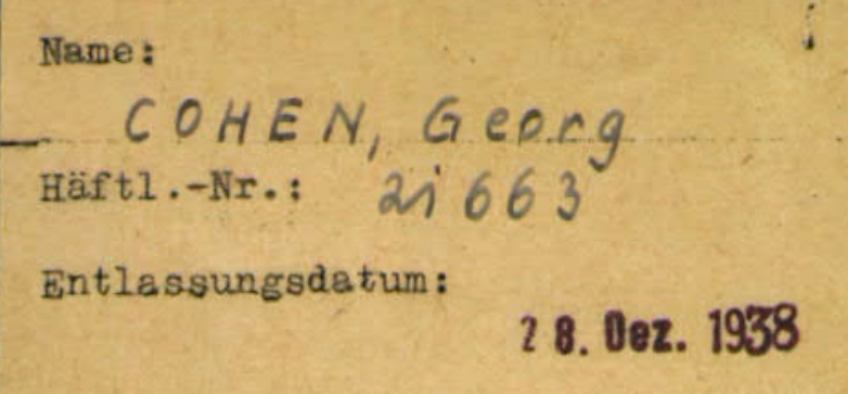 Georg Cohen bekommt die Häftlingsnummer 21663.