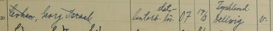 Registrierung von Georg Cohen in Dachau