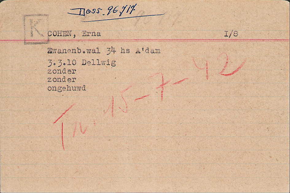 Juli 1942 Schwester Erna bei der Razzia in Amsterdam verhaftet