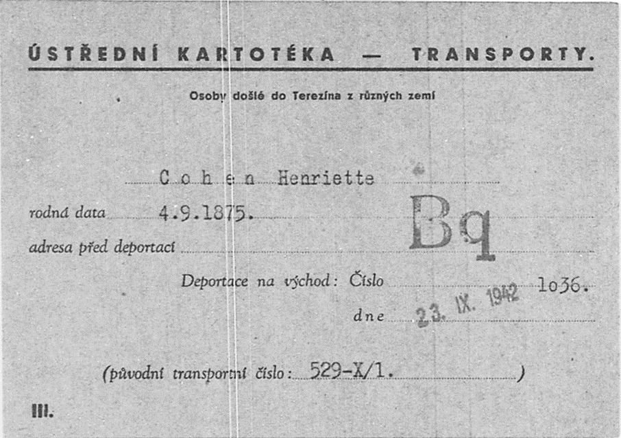 23.9.1942 Mutter Henriette Cohen auf dem Transport B p von Theresienstadt nach Auschwitz
