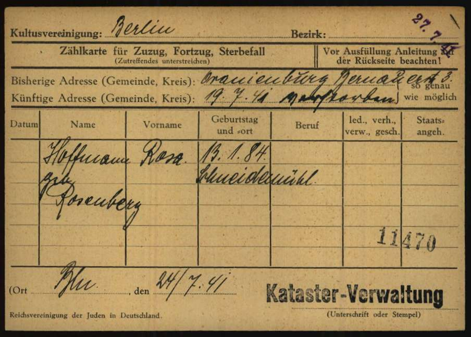 Mutter Rosa Rosenberg *13.1.1884 in Schneidemühl; ✡ 19.7.1941 Oranienburg