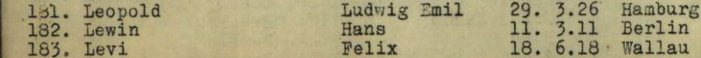 Oktober 1945 Hans Lewin auf der Mitgliederliste des Hechaluz Schweden, Teil B „Alte Chaluzim“