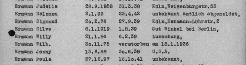 1.8.1939 Sylwer Ermann abgemeldet aus Wittlich zur Hachschara ins Umschulungslager Gut Winkel