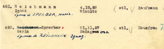 Mutter Marie Sperber *21.11.1887 in Sadagora; ✡ 13.10.1942 in Auschwitz