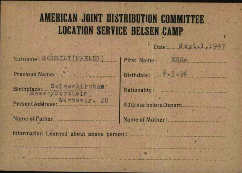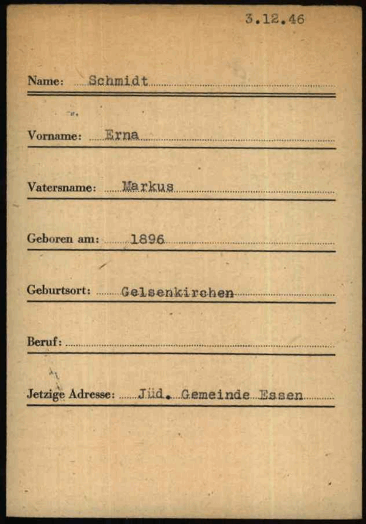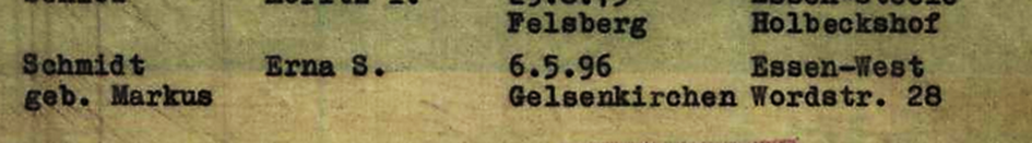 1.9.1947 Erna Schmidt registriert in Essen, Wandastraße 20