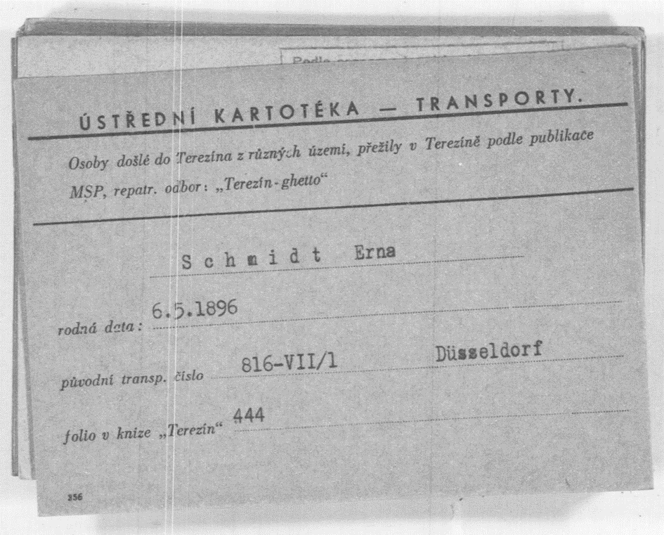 21.7.1943 Erna Schmidt auf dem Transport VII/1 von Düsseldorf nach Theresienstadt