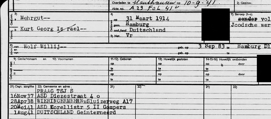 16.11.1937 Kurt Mehrgut von Prag nach Amsterdam, Diezestraat 40 bei Gobas
