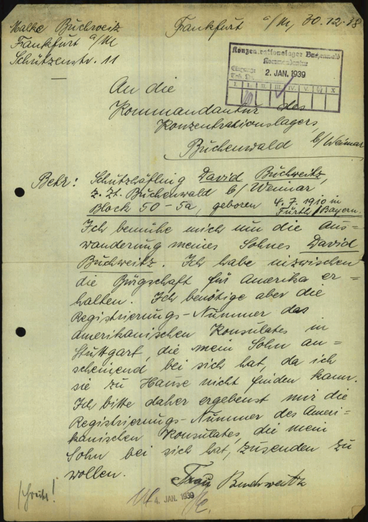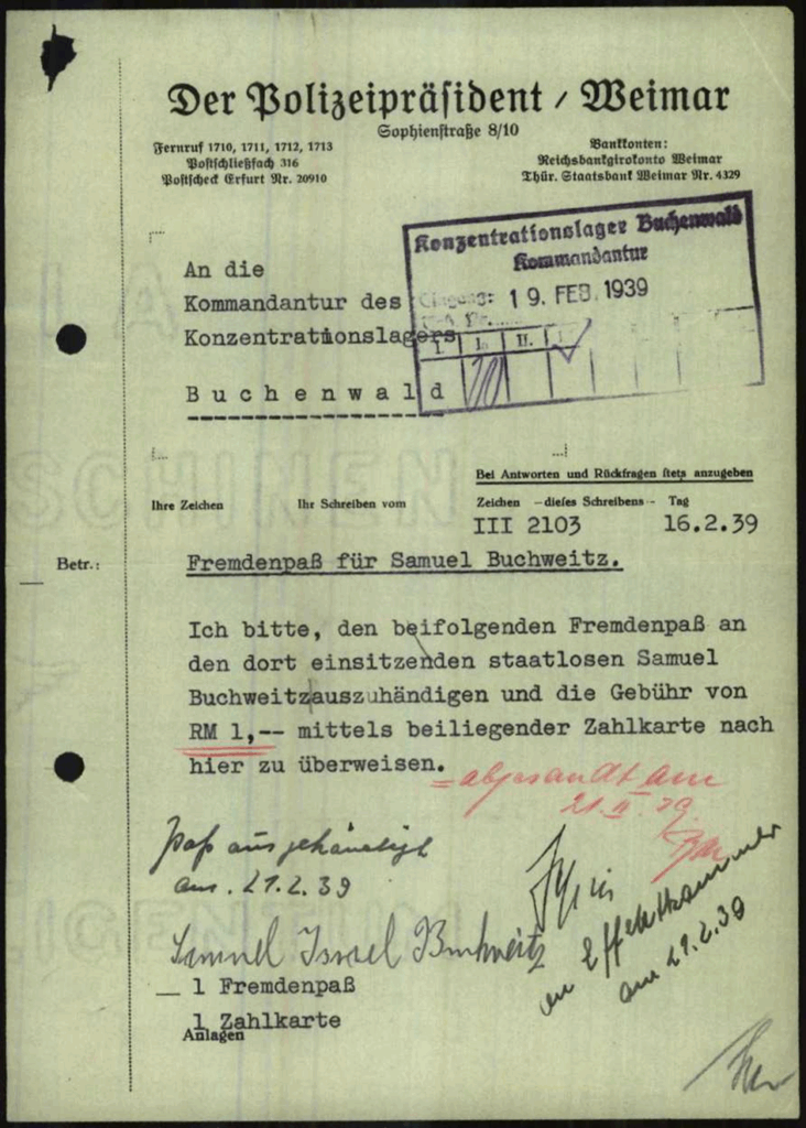 Februar 1939 Samuel Buchweitz noch in Bochenwald
