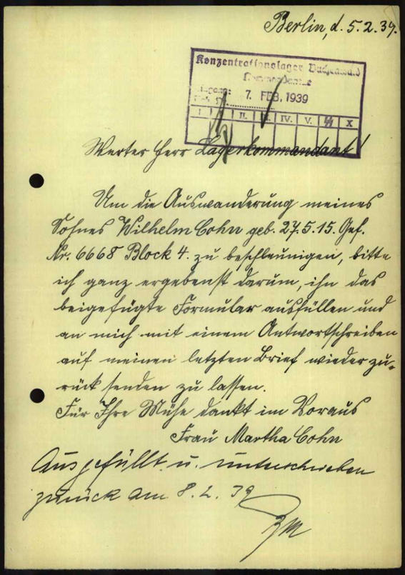 5.2.1939 Schreiben der Mutter, Vorbereitung zur Auswanderung