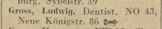 1929 Vater Ludwig Groß, Dentist, im Jüdischen Adressbuch von Groß-Berlin