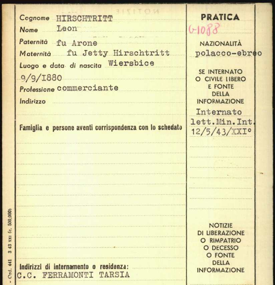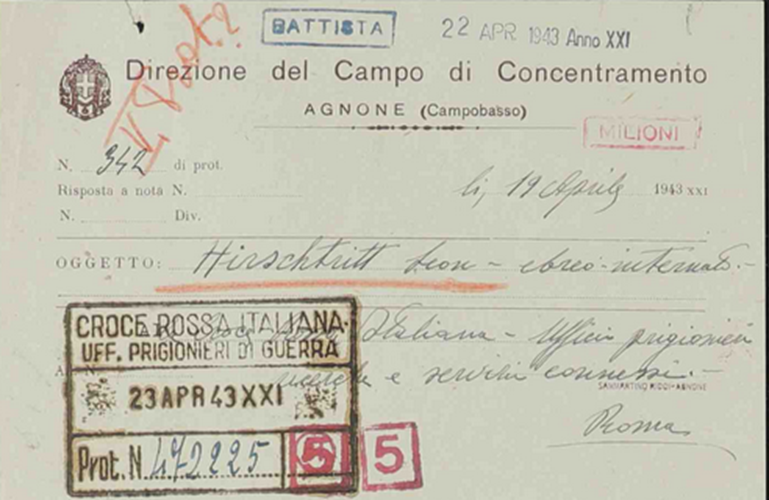 April 1943 Vater Leo Hirschtritt im KL Agnone