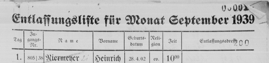 1.9.1939 Überfall der Wehrmacht auf Polen; die bei Haftende geplante Ausweisung nach Polen entfällt