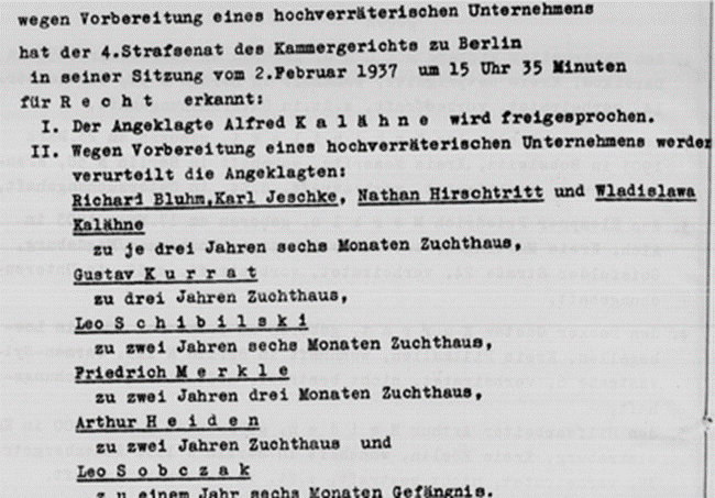 2.2.1937 Gerichtsurteil wegen Vorbereitung zum Hochverrat: 3 ½ Jahre Zuchthaus