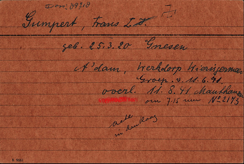 11.8.1941 Tod von Franz Gumpert in Mauthausen; Diagnose „allgemeine Sepsis“