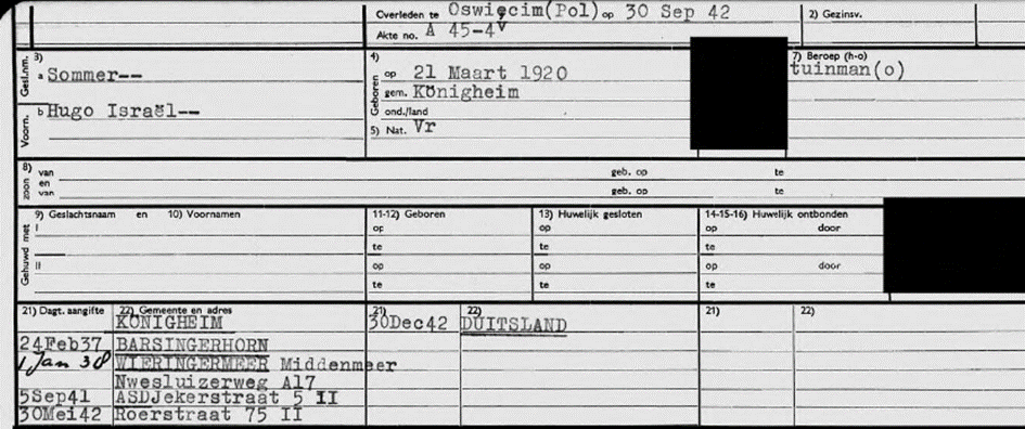 30.5.1942 Umzug von Albert und Hugo Sommer in die Roerstraat 75
