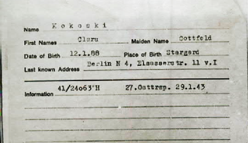 29.1.1943 Mutter Klara auf dem 27. Osttransport von Berlin nach Auschwitz