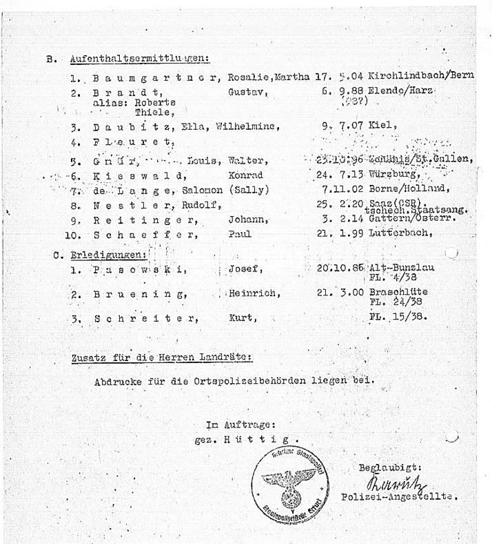 Aufenthaltsermittlung durch die Gestapo