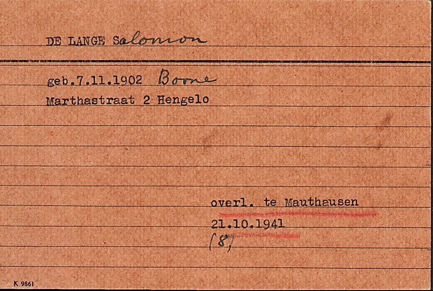 8.10.1941 Tod von Salomon de Lange in Mauthausen