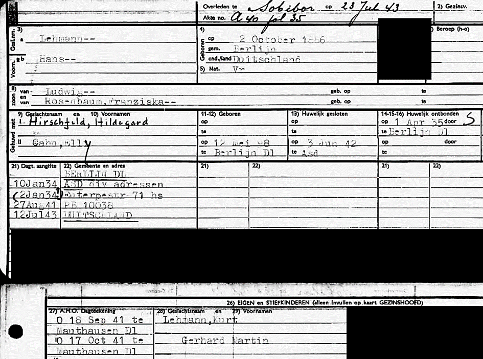 Vater Hans Lehmann *2.10.1886 in Berlin; ✡ 23.7.1943 in Sobibor