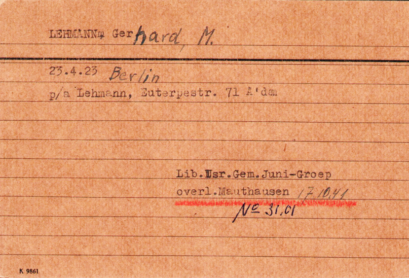 Kurt Lehmann *1.9.1919 in Berlin; ✡ 18.9.1941 in Mauthausen