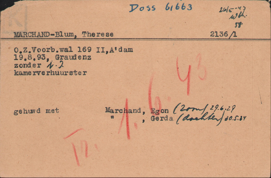 16.2.1939 mit Egon und Gerda Marchand mit Kindertransport von Berlin nach Amsterdam; sie hatten zuletzt in Berlin bei Jonni Blum, Bruder der Mutter in der Löwestraße 16 gewohnt